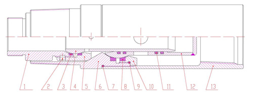 二次作業(yè)時(shí)當(dāng)脫節(jié)器脫開后,活塞在泵筒內(nèi)下落,活塞帶桶桿插入主體部分,關(guān)閉液流通道。